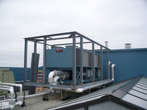 We supplied the powder coated acoustical panels and the general contractor installed them on a structural support that they built. They attached their structural support to the existing dunnage supporting the chiller and avoided making new roof penetrations.