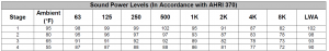 Manufacturers publish sound power levels for each chiller in third octave bands.